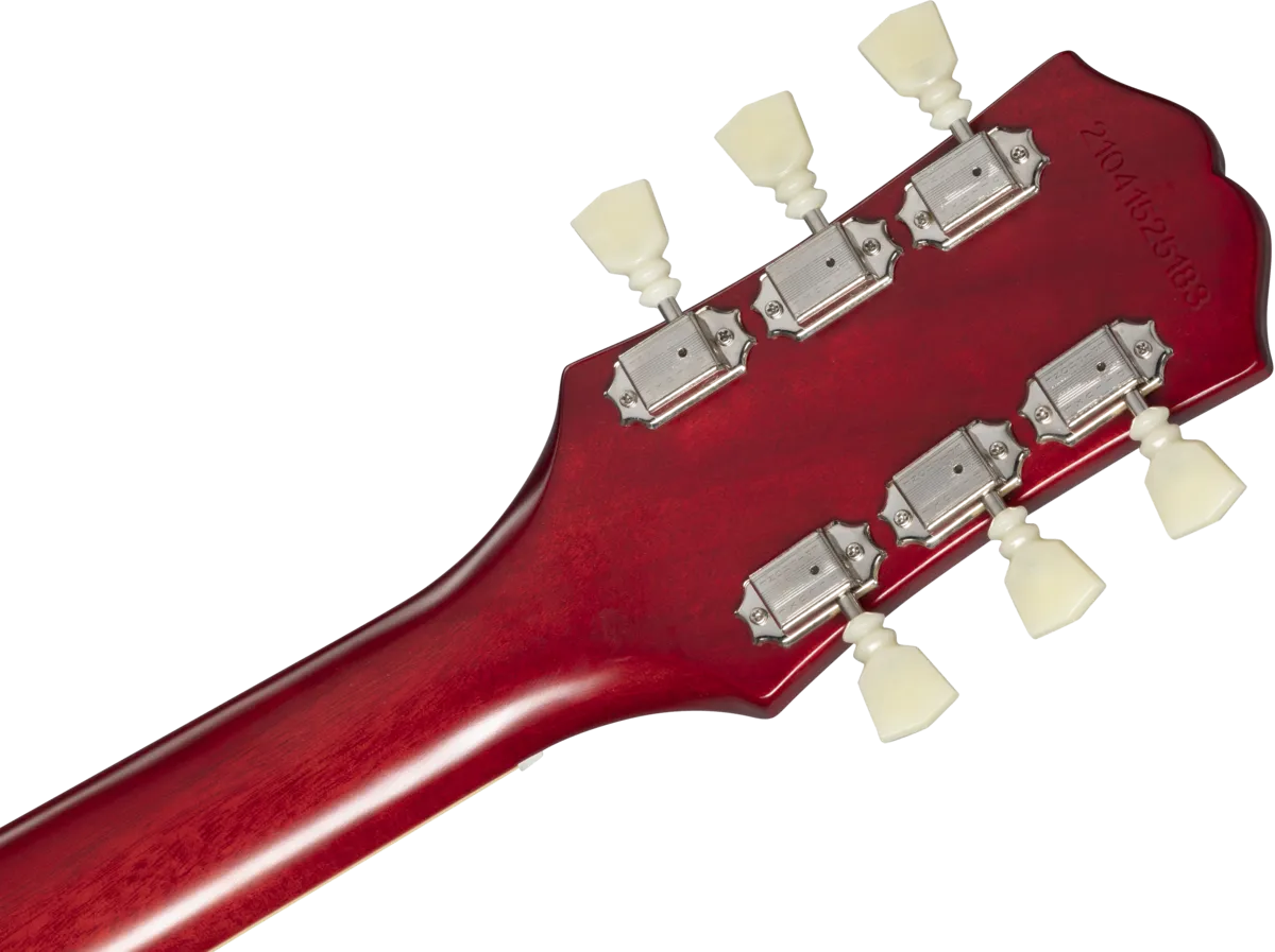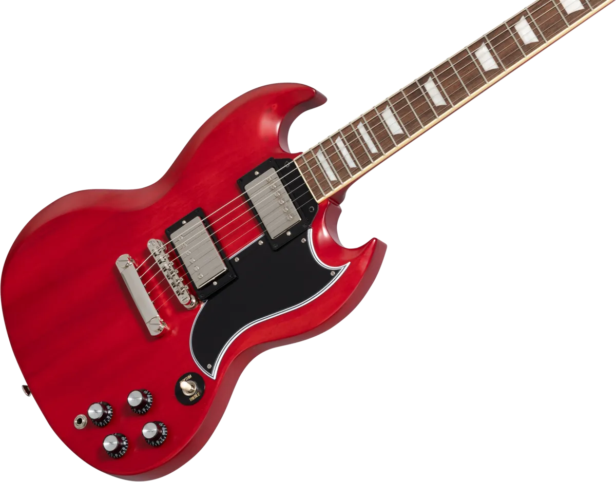 Made in partnership with the Gibson Custom Shop, this Inspired by Gibson™ model is Epiphone’s impressive recreation of one of the most important and popular guitar designs of all time. The Epiphone 1961 Les Paul™ SG™ Standard pays tribute to the legendary original - the very first SG. In 1961, the original shape of the Les Paul model went on hiatus, replaced by an all-new design that is known today as the SG or “solid guitar.” Featuring a two-piece solid mahogany, double-cutaway body with Custom Shop Historic bevels, it also has the one-piece mahogany, fast-playing SlimTaper™ C-shaped neck profile of those legendary early Les Paul SG models. It also has a historically inspired long pickguard and comes equipped with a pair of Gibson™ BurstBucker™ humbucking pickups wired to CTS® potentiometers and Mallory™ capacitors, a Graph Tech® nut, and Switchcraft® output jack and toggle switch. The Epiphone Deluxe tuners feature a historically inspired double ring design. It is available in Aged Sixties Cherry and Aged Classic White. Of course, all of the legendary SG styling and cosmetic touches are here too, and a vintage-style hardshell case is also included.