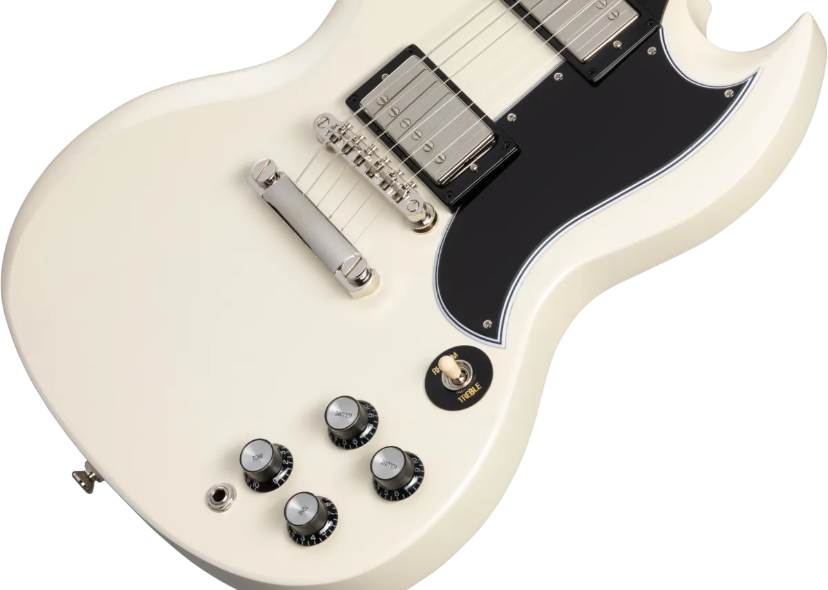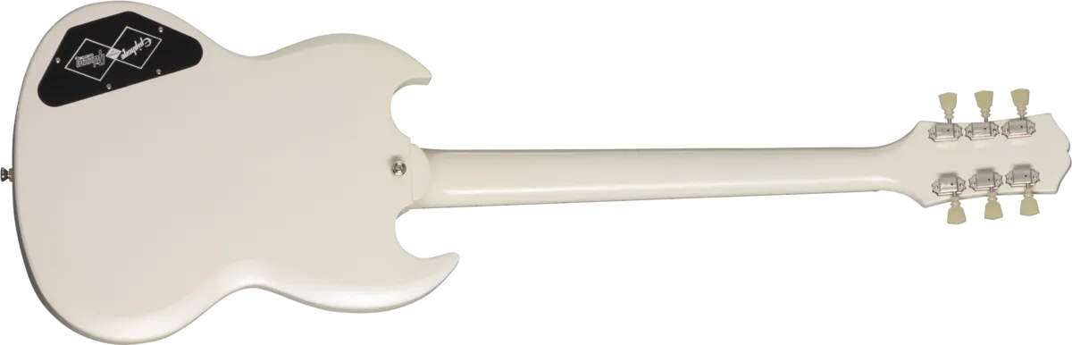 Made in partnership with the Gibson Custom Shop, this Inspired by Gibson™ model is Epiphone’s impressive recreation of one of the most important and popular guitar designs of all time. The Epiphone 1961 Les Paul™ SG™ Standard pays tribute to the legendary original - the very first SG. In 1961, the original shape of the Les Paul model went on hiatus, replaced by an all-new design that is known today as the SG or “solid guitar.” Featuring a two-piece solid mahogany, double-cutaway body with Custom Shop Historic bevels, it also has the one-piece mahogany, fast-playing SlimTaper™ C-shaped neck profile of those legendary early Les Paul SG models. It also has a historically inspired long pickguard and comes equipped with a pair of Gibson™ BurstBucker™ humbucking pickups wired to CTS® potentiometers and Mallory™ capacitors, a Graph Tech® nut, and Switchcraft® output jack and toggle switch. The Epiphone Deluxe tuners feature a historically inspired double ring design. It is available in Aged Sixties Cherry and Aged Classic White. Of course, all of the legendary SG styling and cosmetic touches are here too, and a vintage-style hardshell case is also included.