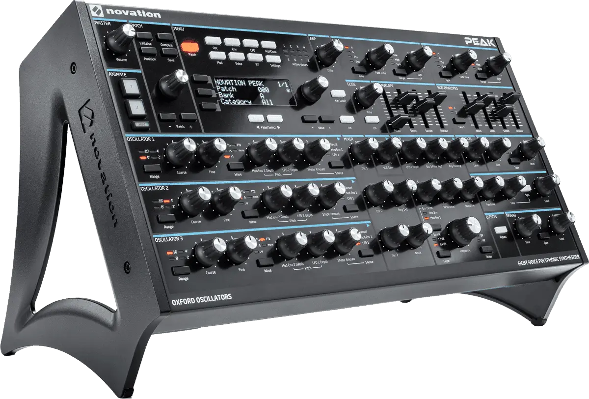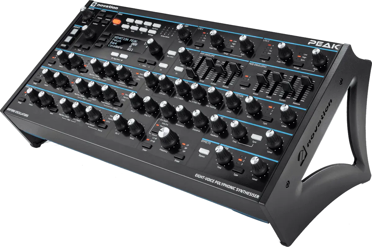 Peak sounds warm and rich with filthy, biting overdrive. It's an eight-voice desktop polyphonic synthesiser with three New Oxford Oscillators for each voice. The synth has a resonant multi-mode analogue filter for each voice, and three distortion points in an analogue signal chain.