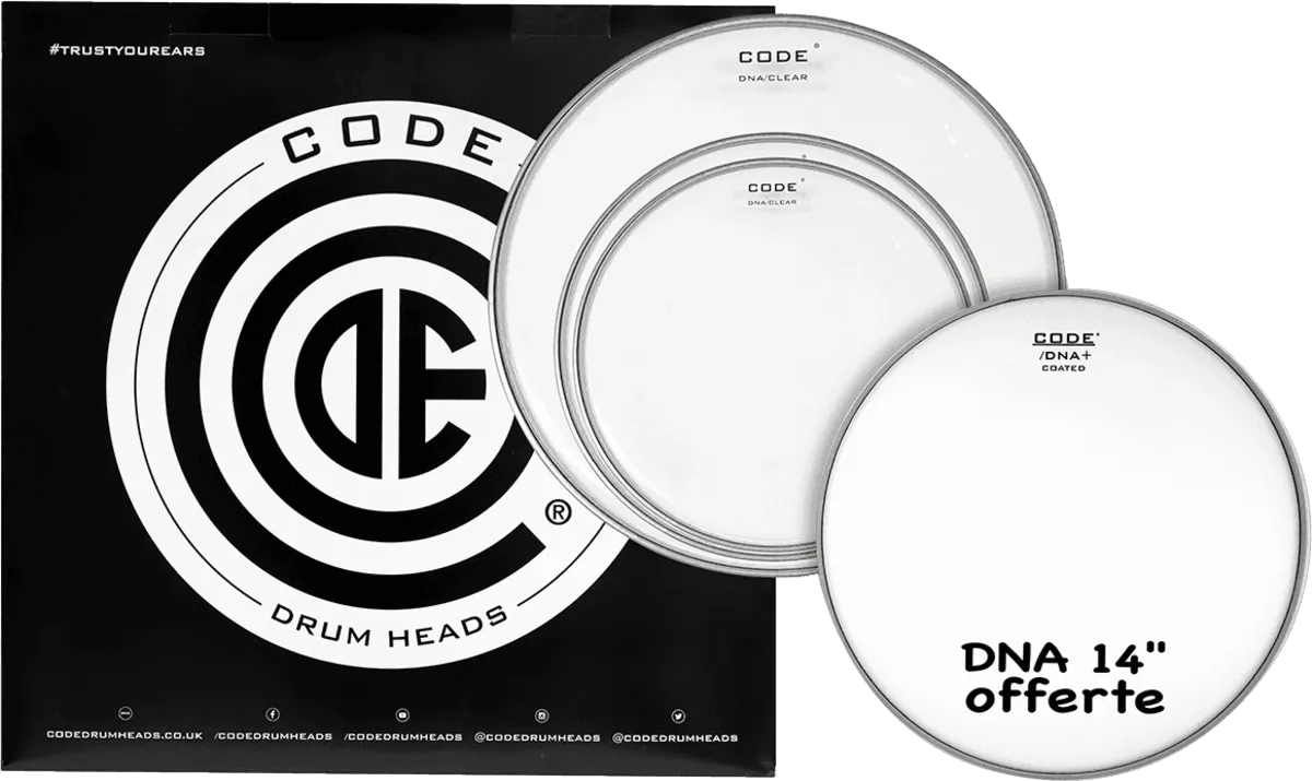 DNA Standard Pack with 12", 13", 16" clear tom heads, and one 14" coated snare head.