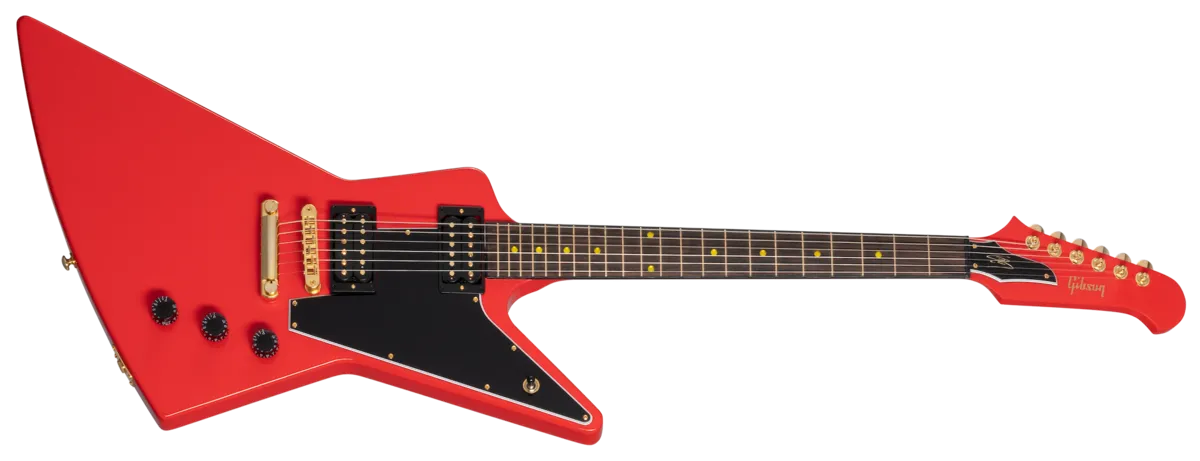 Lzzy Hale, Gibson’s first female Brand Ambassador, is known for her explosive live performances with her band Halestorm. Her new Explorerbird is a hard-rocking, great-looking guitar that is built for heavy music. It combines the body shape of the classic Explorer™ and a Non-Reverse Firebird™ headstock into an artist model that is sure to turn heads and excite audiences. The Cardinal Red nitrocellulose lacquer finish is complemented by gold hardware and frets… and even gold screws and rods on the powerful 70s Tribute pickups. A Modern Series hardshell case is also included.