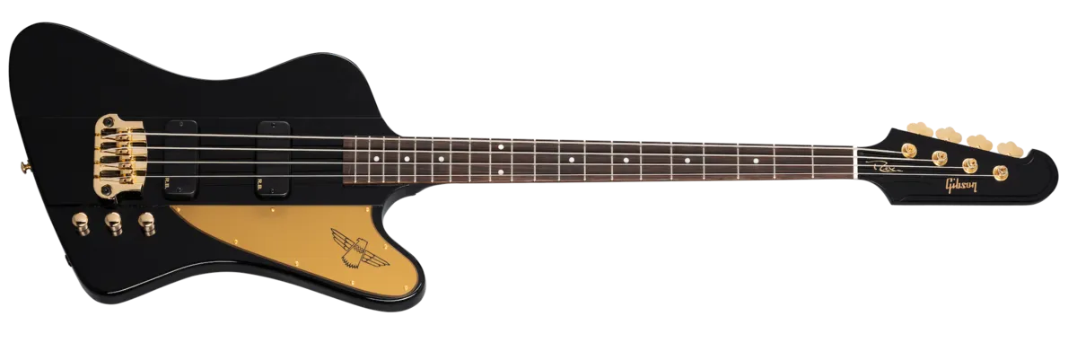 Multi-instrumentalist Rex Brown is well-known for his work with legendary metal bands Pantera and Down, and his hard-rocking solo album, Smoke on This… His new Gibson Rex Brown Signature Thunderbird™ bass features a mahogany neck and body, and gold hardware with a Hipshot® bridge and tuners (including a Drop D Xtender™). A pair of powerful Rexbucker T-Bird pickups provide plenty of output and low-end punch. The master tone control is equipped with a push/pull switch that puts the pickups into passive mode when it is pulled out. Rex’s signature is reproduced on the truss rod cover, and the backplate is embellished with a Rex Brown doodle. A Modern Series hardshell case is also included.
