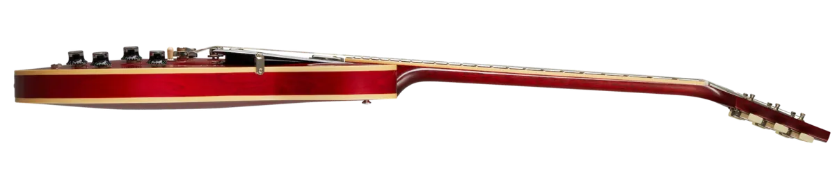 The Historic Reissue ES-335 is back and better than ever thanks to a year of studying, scanning, and listening to original examples. The expert craftspeople at Gibson Custom Shop have rendered every contour, profile, inlay and color of the priceless vintage models in magnificent detail. The result is a playing and ownership experience that will keep you coming back for more. The 1961 Reissue models utilize rounded cutaways, slim-taper neck profiles scanned from originals, dot inlays and vintage-replica parts.