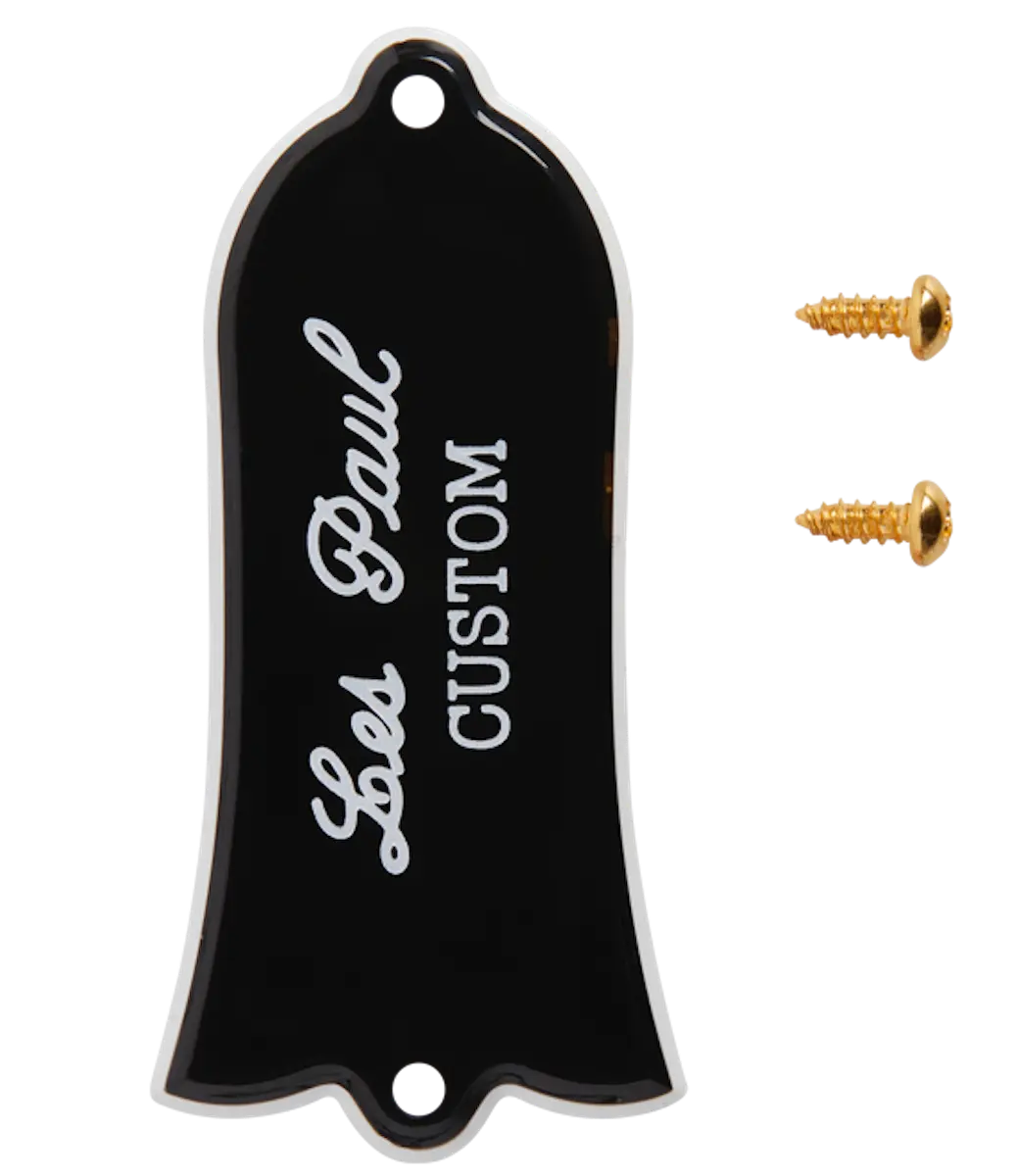 An original, molded OEM replacement truss rod cover to make your Gibson Les Paul Custom look exactly as it did the day it left the factory, including the screws for installation. This two-ply truss rod cover is made of ABS plastic and features the distinct "Les Paul Custom" script logo. Available only in black.