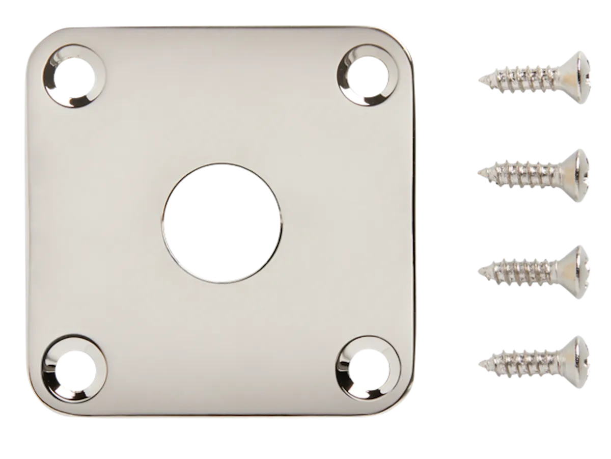 A Gibson original OEM replacement or restoration output jack plate made from molded metal that fits any vintage or modern day Les Paul.