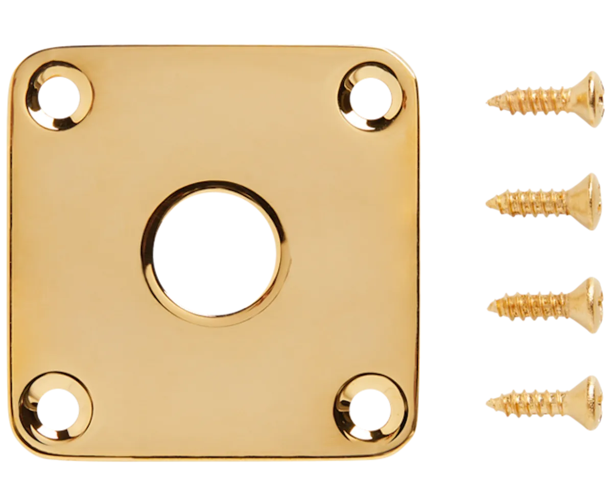 A Gibson original OEM replacement or restoration output jack plate made from molded metal that fits any vintage or modern day Les Paul.