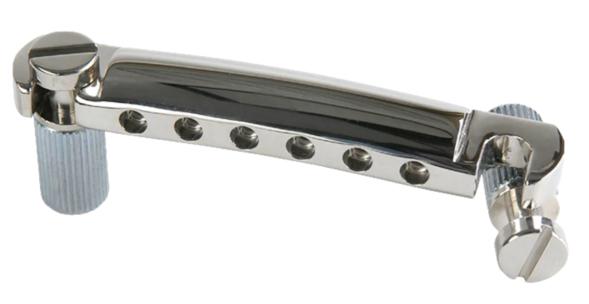 Gibson's original stopbar tailpiece was designed by legendary Gibson president Ted McCarty in the early 1950s as a modified version of the earlier wraparound bridge/tailpiece. When combined with Gibson's pioneering Tune-o-matic bridge, the stopbar tailpiece delivers increased sustain, enhanced harmonic overtones, and improved tuning stability. Together, the combination form an industry standard considered the epitome of form and function in electric guitar bridge design. Nickel.