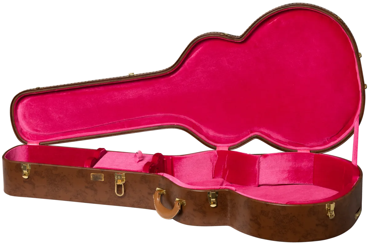 Since 1918, Lifton™ has been acclaimed worldwide for fine leather goods and musical instrument cases that are as synonymous with Gibson as the instruments inside of them. Lifton continues that tradition of excellence today with our Lifton Historic Hardshell Cases. Inspired by the iconic cases from the 50s and 60s that were made during the height of Gibson's Golden Era, they feature classic styling and are designed to provide a lifetime of protection for your prized Gibson guitar. Designed to fit: 50s SJ-200 (fits most J-200™ models) Exterior: Mottled Brown Tolex Interior: Pink Plush Historic C-shaped handle Historic style latches with one locking latch Accessory compartment with ribbon pulltab Internal dimensions: 44 1/4' total interior length, 24 3/4" body length, 12 7/8" upper bout width, 10 7/8" waist width, 16 1/2" lower bout width, 4 3/8" depth