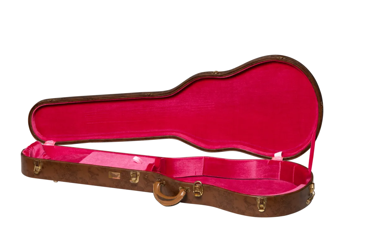 Since 1918, Lifton™ has been acclaimed worldwide for fine leather goods and musical instrument cases that are as synonymous with Gibson as the instruments inside of them. Lifton continues that tradition of excellence today with our Lifton Historic Hardshell Cases. Inspired by the iconic cases from the 50s and 60s that were made during the height of Gibson's Golden Era, they feature classic styling and are designed to provide a lifetime of protection for your prized Gibson guitar. Designed to fit: 50s Les Paul™ Standard (fits most Les Paul Standards & Les Paul Customs) Exterior: Mottled Brown Tolex Interior: Pink Plush Historic C-shaped handle Historic style latches with one locking latch Accessory compartment with ribbon pulltab Internal dimensions: 39 3/4" total interior length, 20 1/4' body length, 9 1/4' upper bout width, 9 1/8" waist width, 13 1/8" lower bout width, 2 7/8" depth