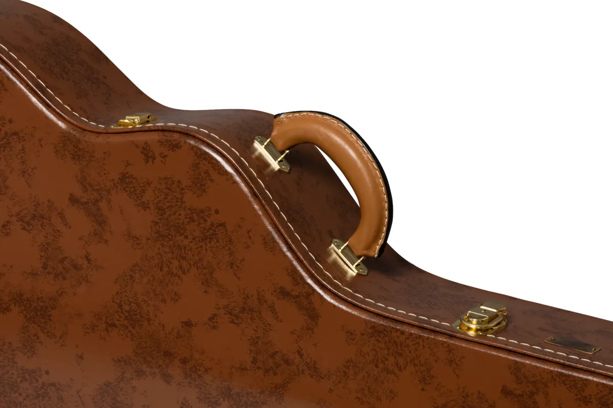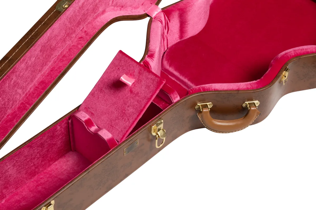 Since 1918, Lifton™ has been acclaimed worldwide for fine leather goods and musical instrument cases that are as synonymous with Gibson as the instruments inside of them. Lifton as continues that tradition of excellence today with our Lifton Historic Hardshell Cases. Inspired by the iconic cases from the 50s and 60s that were made during the height of Gibson's Golden Era, they feature classic styling and are designed to provide a lifetime of protection for your prized Gibson guitar. Designed to fit: 50s J-185 (fits all J-185s) Exterior: Mottled Brown Tolex Interior: Pink Plush Historic C-shaped handle Historic style latches with one locking latch Accessory compartment with ribbon pulltab Internal dimensions: 44 1/4" total interior length, 24 7/8" body length, 12 1/8" upper bout width, 10 1/4" waist width, 16 1/4" lower bout width, 4 1/2" depth