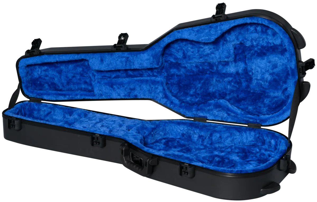 Inspired by the design of vintage 70s-era Gibson "chainsaw" cases, Gibson Deluxe Protector Series hardshell cases feature rugged polyethylene shells and modern improvements like TSA-approved locks, ergonomic soft-grip handles, and black powder-coated hardware. Protect your instrument with a case that delivers both vintage-inspired style and modern technology.
