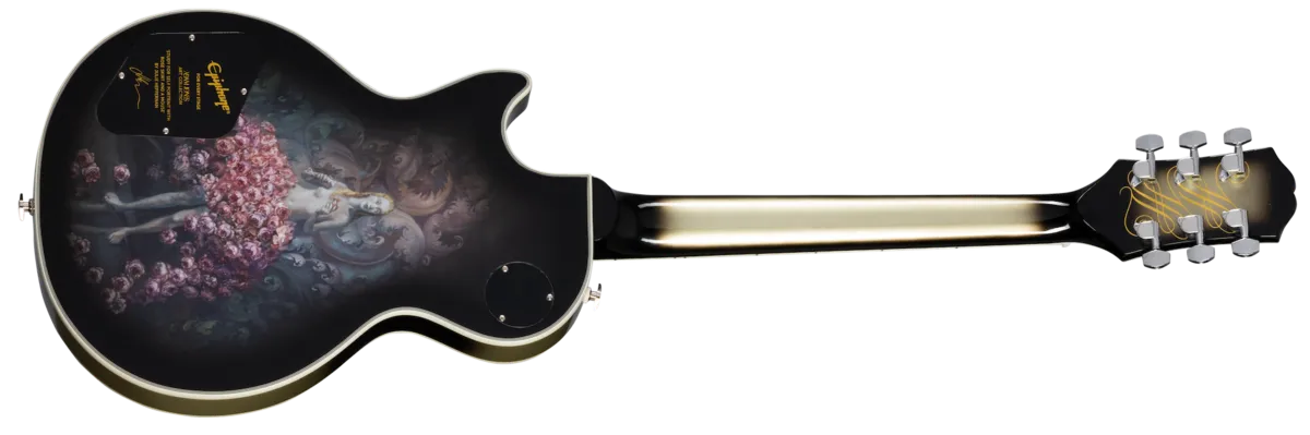 The Epiphone Adam Jones Art Collection consists of seven Silverburst Les Paul™ Custom models, each featuring reproductions of different works of fine art on the back. Adam curated he featured artwork, and additional artwork, designed by artist Korin Faught, adorns the back of the headstock of each model. Five distinguished artists are featured in the collection, and only 800 guitars of each model will be produced. This unprecedented limited-edition collection brings Adam's love of art and music together.