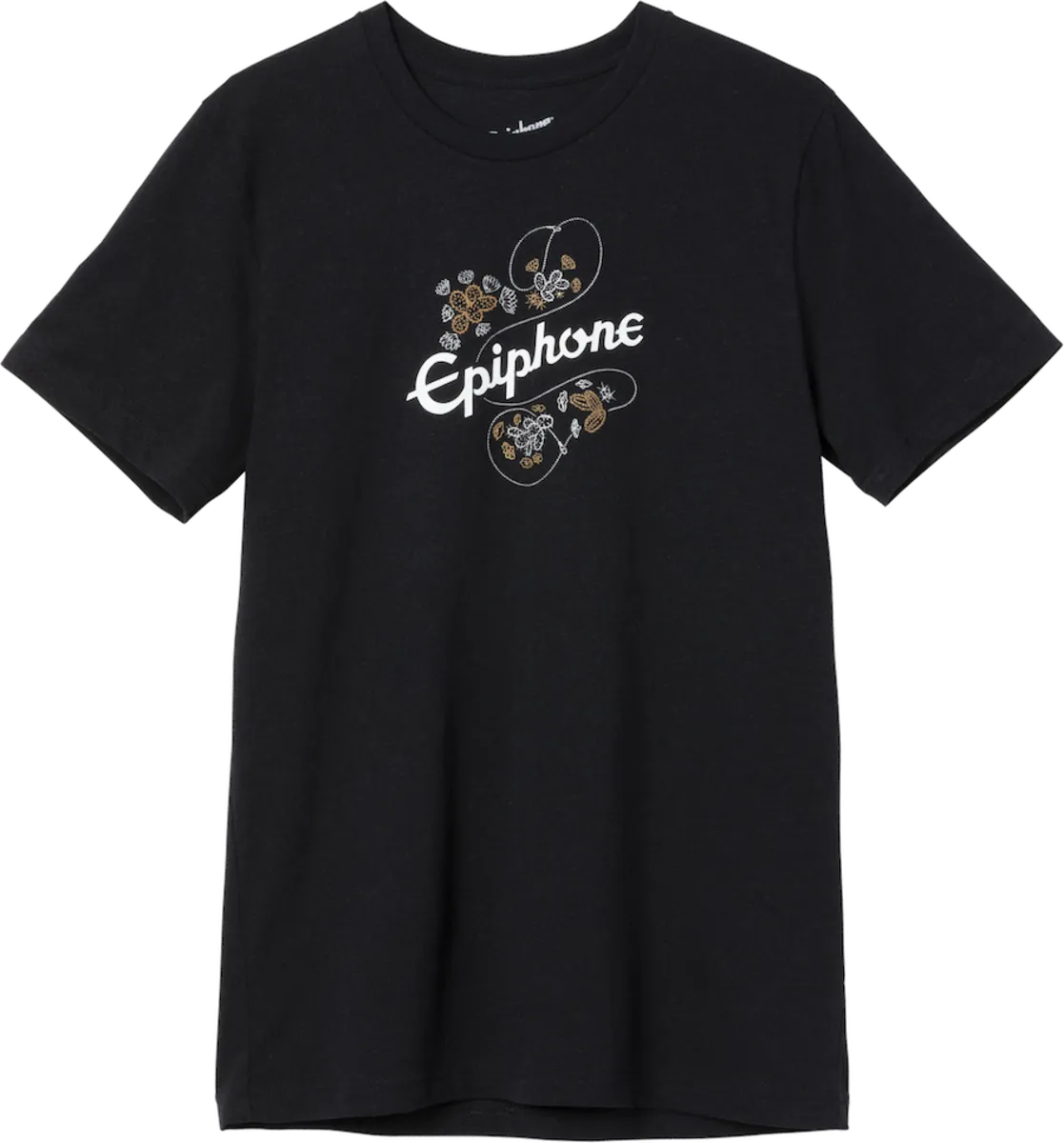 This black Epiphone Frontier tee features the vintage Epiphone logo and the iconic Frontier "rope and cactus" pickguard graphic. This will be one of your favorite tee shirts.