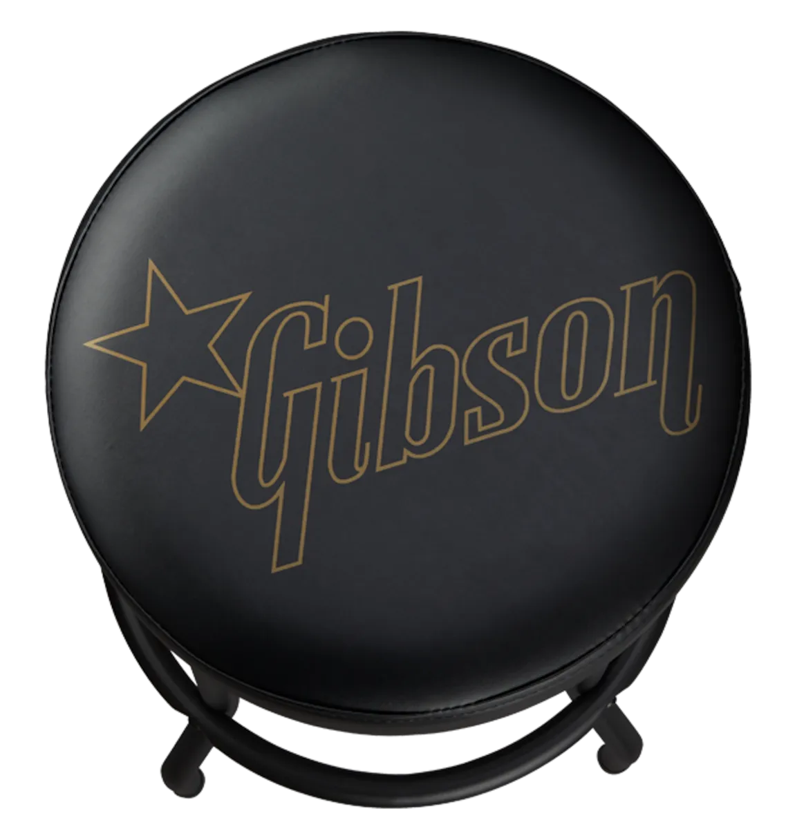This 30" high playing stool features a comfortable, padded vinyl seat that swivels through 360 degrees and that is adorned with the Gibson Star logo. The classic barstool-style tubular steel legs have a matte black finish, and the stool has a foot ring for added comfort.