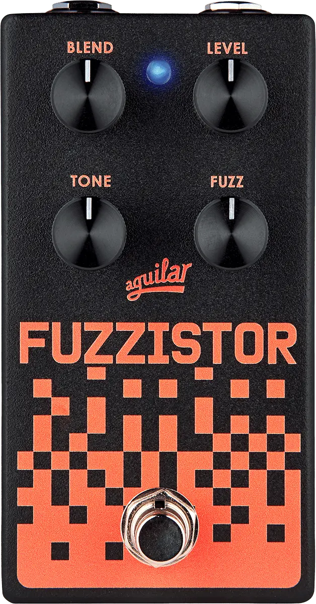 Delivering the deep and textured tones that Aguilar bass pedals are known for, the Fuzzistor® provides classic silicon transistor distortion. The Fuzzistor® allows for complete control over the BLEND of the clean and fuzz sound, where the LEVEL is for gain matching. The FUZZ control sets the amount of fuzz, from subtle to crushing. The TONE is a tilt EQ that changes the harmonic structure of the fuzz from booming to gnarly.