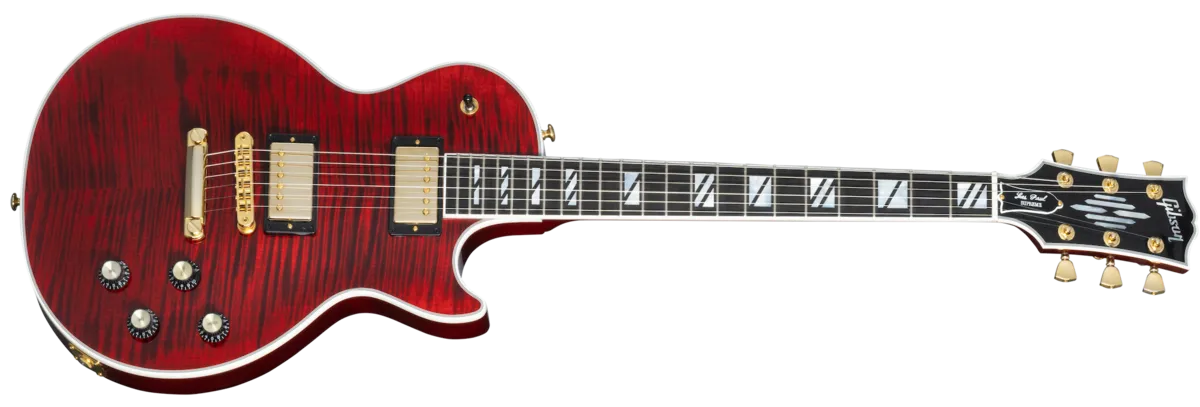 Gibson is excited to announce the return of the Les Paul Supreme. With a refreshed feature set. it is bound to overshadow everything else in sight and be one of the most exciting new releases of the year. It features a beautiful AAA-figured maple top on mahogany body with Ultra-Modern Weight Relief. The mahogany neck has ebony fretboard with compound radius and Super Split Block mother-of-pearl inlays. The neck has Modern Contoured Heel for exceptional upper fret access, and the headstock is adorned with a striking new mother-of-pearl inlay inspired by design from the 1940s that was discovered in the Gibson archives. The Burstbucker Pro and Burstbucker Pro pickups are paired with push/pull Volume and Tone potentiometers for flexible coil cap, phase, and Pure Bypass switching. The three gorgeous finishes are elegantly highlighted with gold hardware, making this not only a great-sounding and highly flexible instrument but also an exceptionally beautiful-looking modern rock machine. A hardshell case is also included.