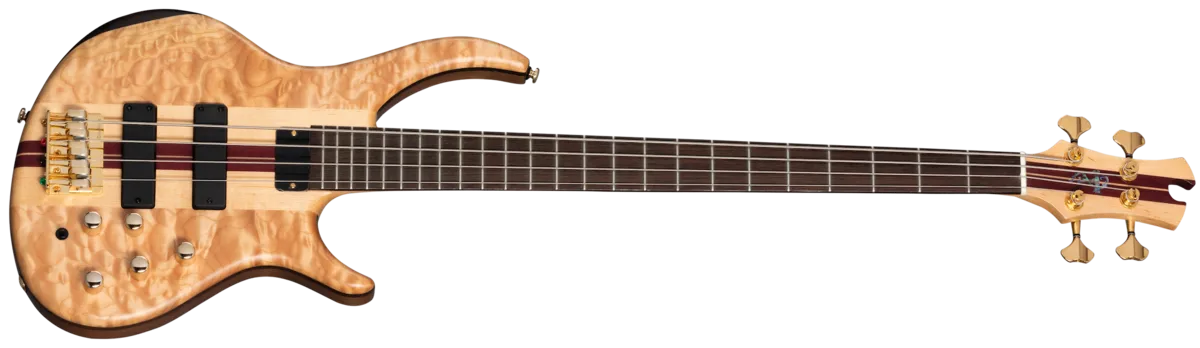 Reintroducing the Tobias Classic IV. Tobias basses deliver exceptional clarity inthe low end, punchy, articulate midrange, and sweetness in the high frequencies.Uncompromising performance and tone are what the Tobias Classic IV is all about.Crafted from the finest tonewoods, the Classic IV features a 34" scale, 5-piece stringerneck through-body made from hard maple and purpleheart, and 3-layer body wings madefrom walnut, wenge, and capped with a highly figured quilted maple cap. The neck has awenge fretboard and 24 jumbo frets, a bone nut, the easy-playing Tobias Asym™ profile,and is equipped with Gotoh® tuners. A Babicz® bridge ensures exceptional action andintonation adjustability. Two active Bartolini® humbucking pickups, an 18V preamp, andVolume, Bass, Mid, Treble, and Blend controls, along with a Mid Frequency switch,provide all the control you need to dial up your ideal bass tone. A Tobias premium gig bagis also included.