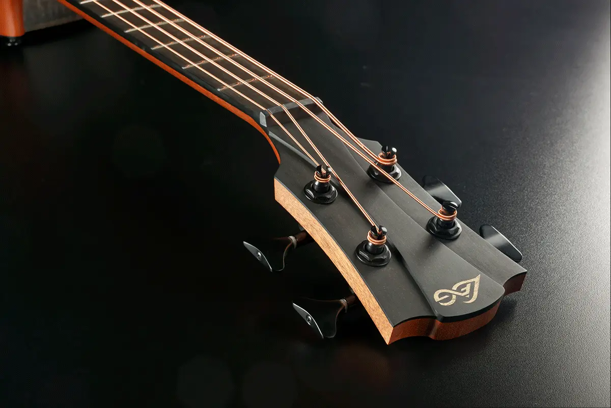 The iconic Lag headstock design, mirrored on the bridge, along with rough sawn appearance on the back and sides, and black machine heads, adds to the visual allure of the Sauvage-BCE. It's a bass guitar that stands out not only for its sound but also for its visual elegance.