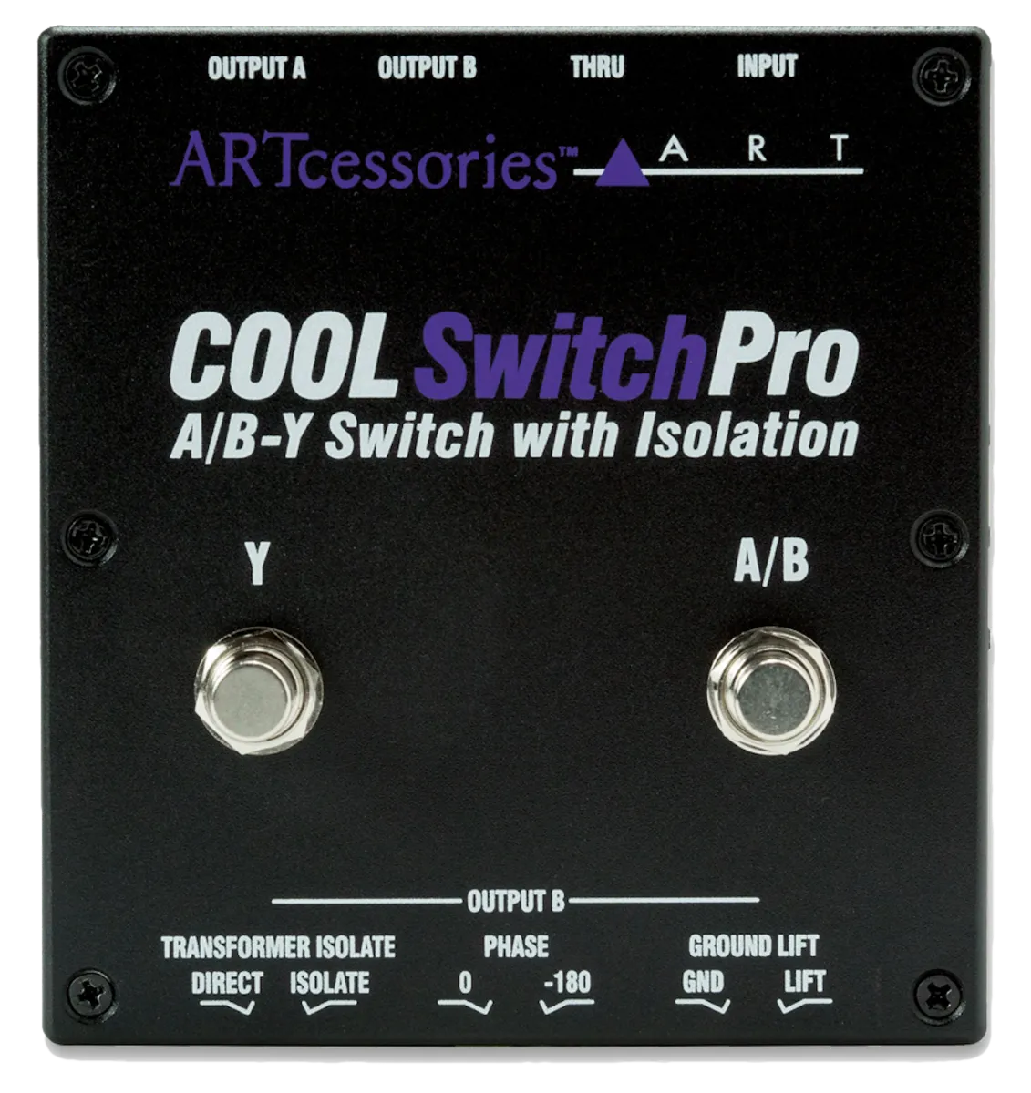 The ART COOLSwitchPro A/B-Y Switch with Isolation is a handy foot-operated box that lets you switch an instrument signal (guitar, bass, or keyboard) to either of two amplifiers or amp channels, A or B. The “Y” function sends the input signal to both the A and B outputs in parallel.