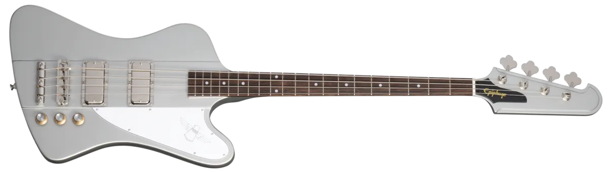 What do you think of first when someone mentions a Thunderbird ™ Bass? The distinctive shape that legendary automotive designer Ray Dietrich created? The sustain-enhancing nine-ply neck-through-body construction? The low-end punch from the two powerful bass humbucker™ pickups? Classic eye-catching, auto-inspired custom colors? In honor of the 60th anniversary of the groundbreaking Gibson Thunderbird, Epiphone is proud to introduce the Thunderbird '64. Inspired by the vintage Gibson T-Bird basses of that era, the new Thunderbird '64 retains all of the classic elements that made the originals iconic, from the nine-ply mahogany and walnut neck-through-body construction right down to the instantly-recognizable hot-stamped Thunderbird logo on the three-ply pickguard.