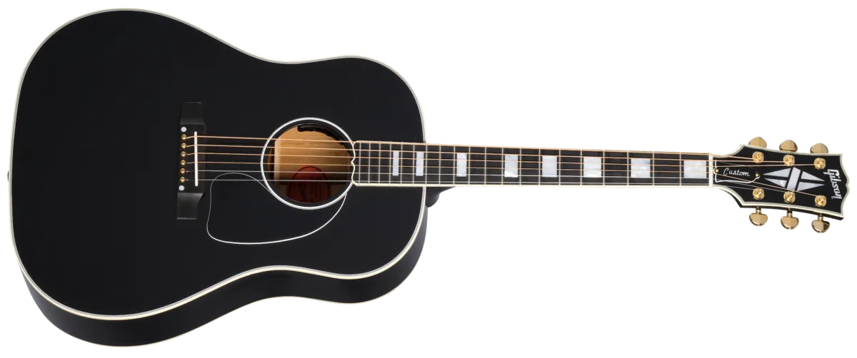 The J-45M is the most popular Gibson acoustic model of all time. Its distinctive tone has made it the choice of musical legends across genres for decades. Now, the Gibson Custom Shop is proud to introduce the new J-45 Custom. The classic J-45 features that players demand are all here, including a Sitka spruce top, mahogany back and sides, and a mahogany SlimTaper™ neck with a 24.75" scale length. The J-45 Custom takes things to the next level with Les Paul™ Custom-inspired cosmetics, including an Ebony