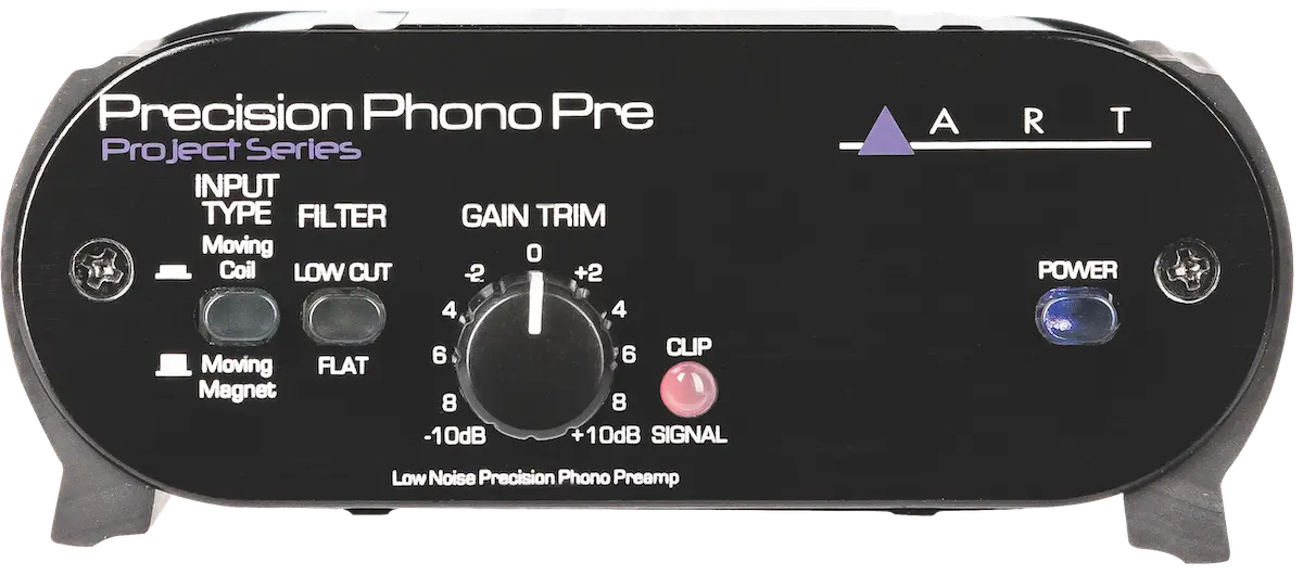 Analog inputs on the ART Precision Phono Pre amp are switchable between Moving Magnet and Moving Coil. The unit changes both the gain and the cartridge loading to suit the selected cartridge. The front gain trim control with the signal present/clip LED allows the user to optimize the output for a wide range of cartridges.