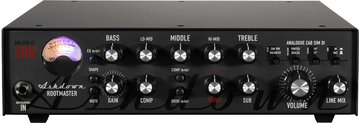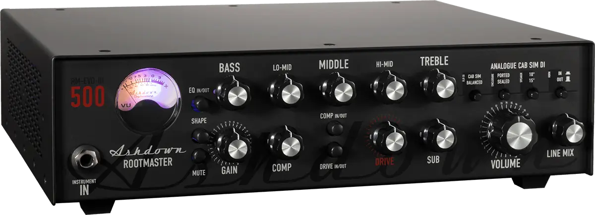 touch of stage presence, and the matte alloy front paneleliminates reflections under bright lights. Whether you're performing on stage or perfecting your craft in the studio, the Ashdown RM-500 EVO Il delivers unparalleled tone, power, and style.