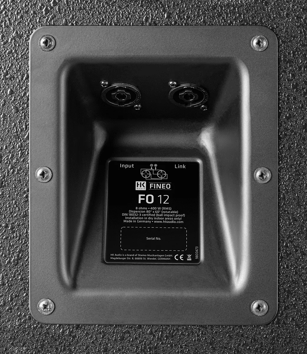 In this newly fine-tuned speaker system, the proven standard format with a 12" low-frequency woofer and a high-resolution 1" high-frequency driver, provides the ideal compromise between achievable sound pressure and low colouration in the reproduction of all types of music and speech. The BEM-optimized constant directivity horn with the powerful 1" compression driver comes from the CONTOUR X series, which was developed for the rough and tumble of touring. With a dispersion angle of 80° x 60° and the ability to rotate 90°, it always delivers the optimum dispersion pattern whether it is used horizontally or vertically. In combination with subwoofers such as the S118 or S218, the result is a very powerful system that can reproduce modern music styles at a high level without any restrictions. The FO 12 can also be used for larger venues, provided that further-away areas of the room are boosted with delay speakers (e.g. with the FO5, which can be installed unobtrusively).