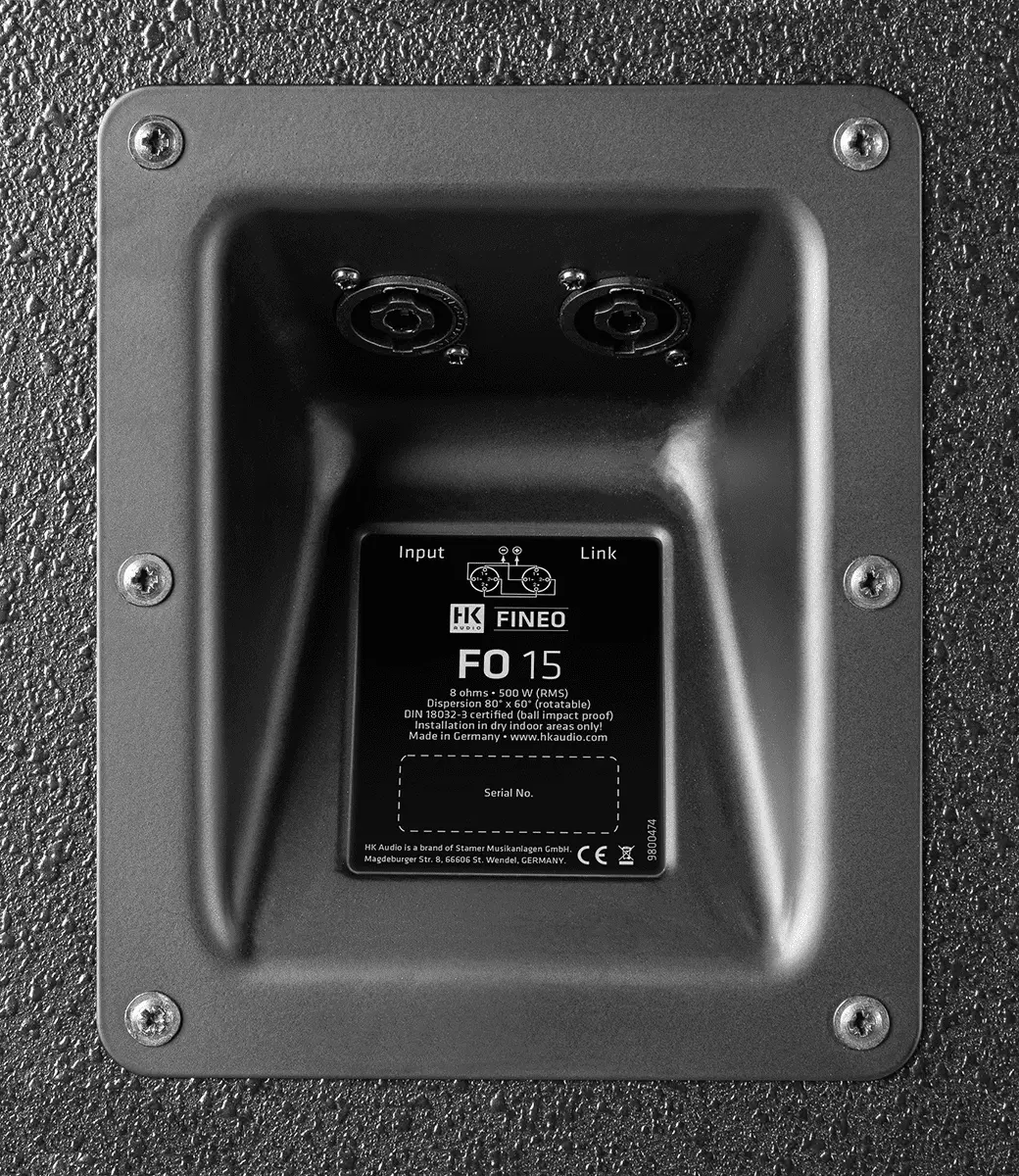 With its 15" woofer with 2.5" voice coil, the FO15 offers the fullest bass foundation and is the most powerful speaker in the FINEO product family without compromising on flexibility. The constant- directivity horn with powerful 1" compression driver is well-known from the CONTOUR X series developed for everyday touring. With a dispersion angle of 80° x 60° and the ability to rotate 90°, the speaker can be operated upright, lying on its side or suspended on its side for optimum dispersion. The FO 15 is particularly effective in larger rooms or in applications requiring high sound pressure levels, offering crystal- clear, assertive sound with a solid bass foundation in full-range applications for all types of speech and music. Combined with the S118 or S218 subwoofers, the result is a system with a powerful midrange and bass for use as the main sound system for music and karaoke, in clubs or in sports venues.