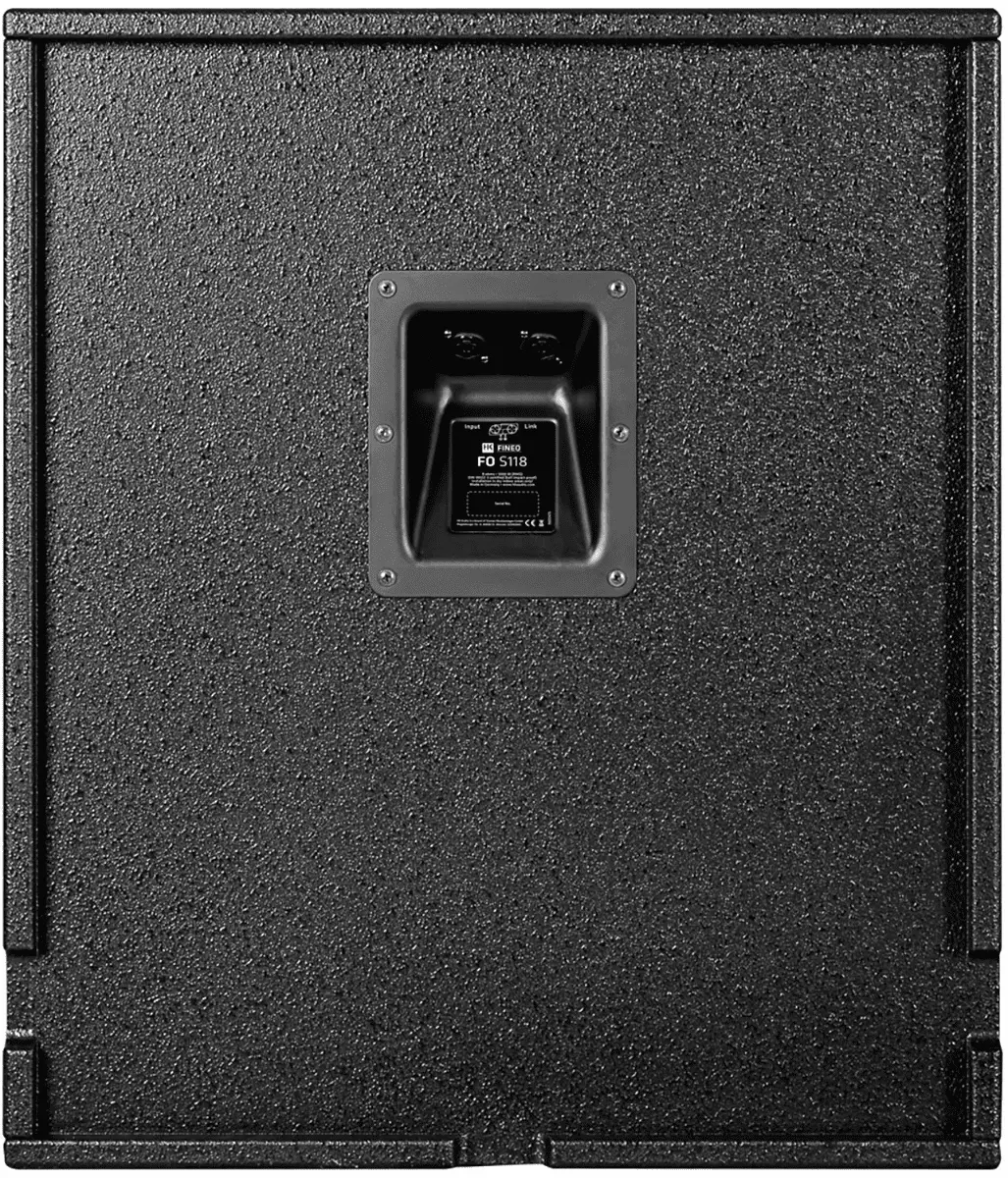 Particularly powerful and high-impact subwoofer with 18" woofer and 3" voice coil. Voluminous bass even for larger rooms and when the sound requires more noticeable boost in the lowest frequency ranges. The optimal complement for larger systems with FO10, FO12 and FO15 loudspeakers. Despite the large membrane area, the FO 5118 is compact and easy to integrate into various ambiences. Cable routing close to the wall is facilitated by the milled openings on the back. A secondary grille protects the bass reflex port trom accidental or deliberate insertion of foreign objects. A ball-impact resistance certificate in line with DIN 18032-3 is provided for installations in sports facilities.