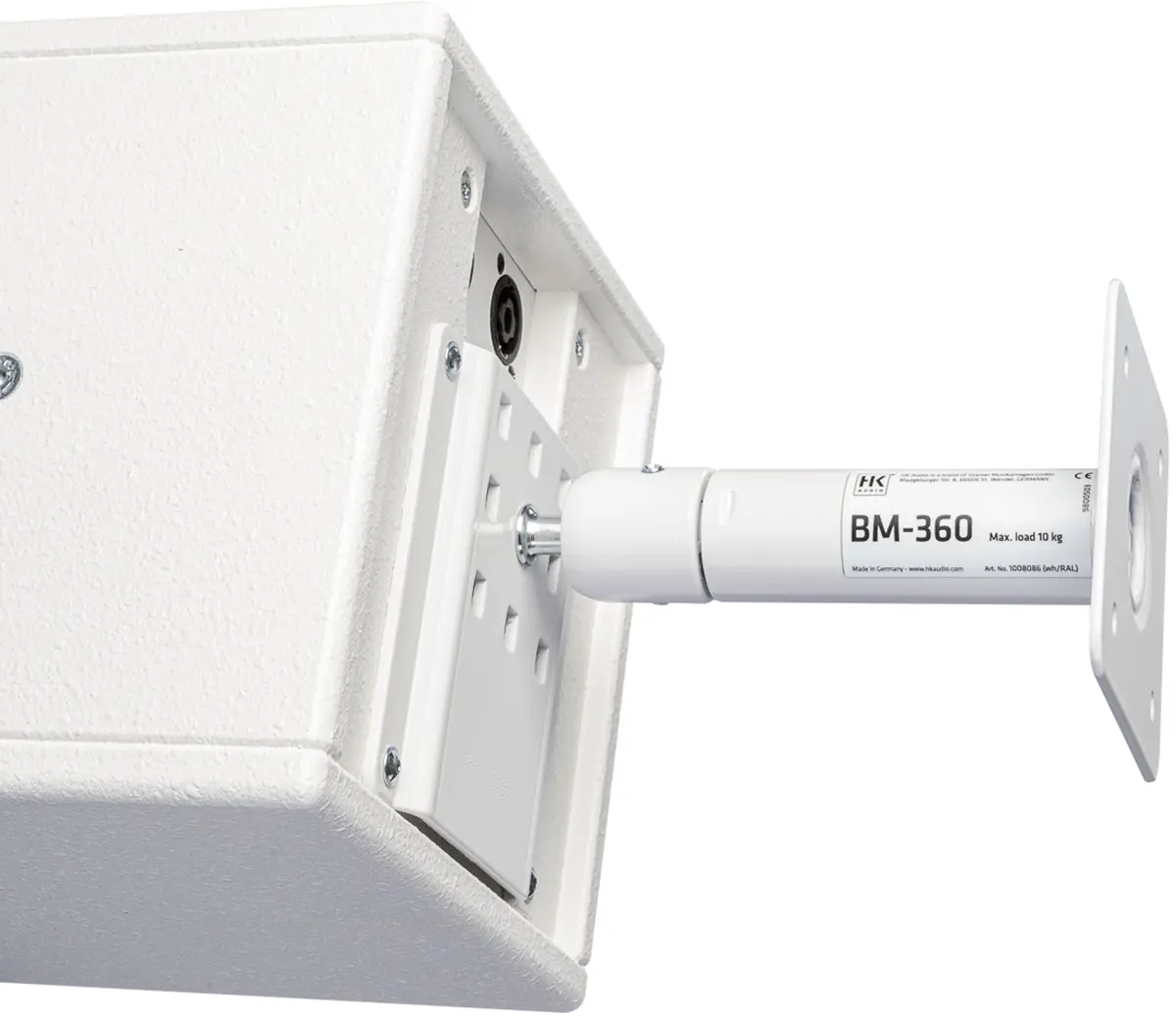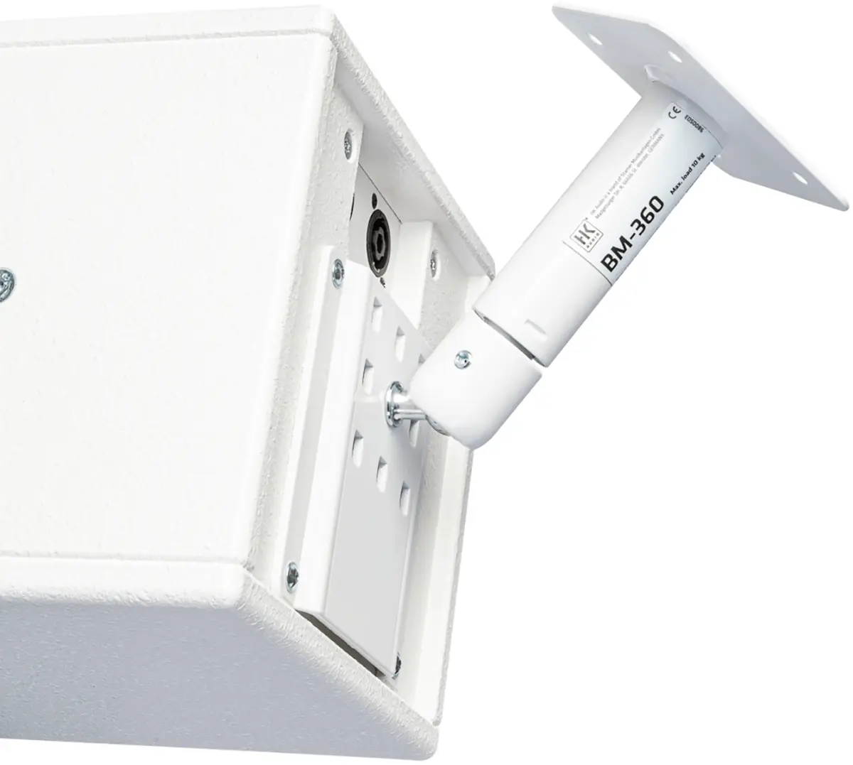 With the 360°-rotatable bracket BM-360, a loudspeaker such as the FINEO FO 5, can be installed on a wall, ceiling or surface.The tilt angle can be adjusted continuously on all axes to ensure perfect alignment of the loudspeaker even in difficult environments to ensure pertect alignment of the speaker even in architecturally difficult environments.
