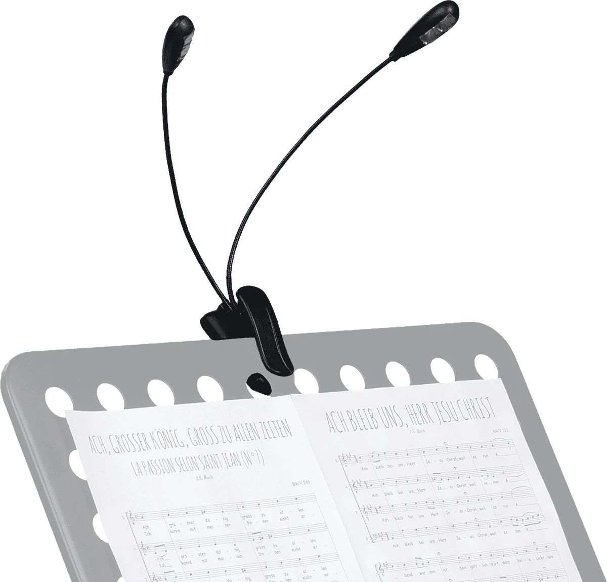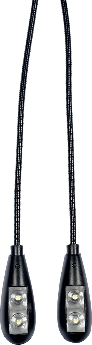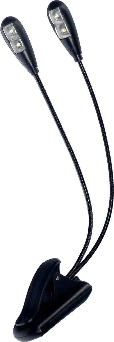 Need more light on stage because you're working with broader parts? Have a look at the RTX LP2L music stand lamp. It's equipped with two flexible goosenecks, each of which is fitted with a pair of LEDs that can be toggled at will and pointed at your pages at any angle. What's also great is that L2PL runs on batteries (3x AAA, included) which means you'll never have to move your stand or lectern closer to a power socket ever again.