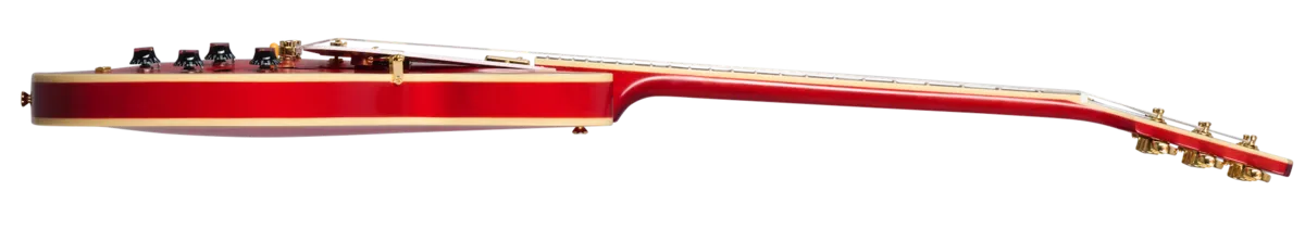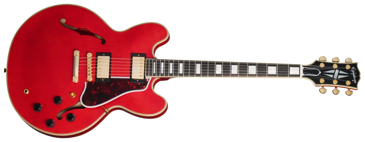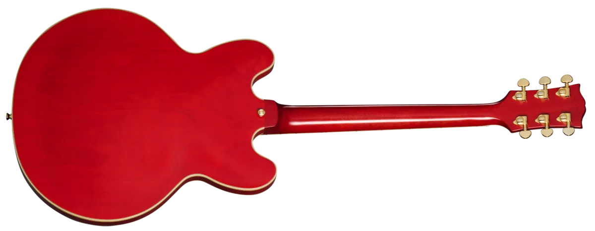 In partnership with Gibson T Custom, Epiphone is proud to release the 1959 ES-355, a stunning recreation of the preeminent ES™ model from the legendary class of 1959. It's the top-of-the-line ES model in all its glory, from the dimensions to the contours to the precise inlay patterns and sonic experience. The 1959 ES-355 features a 5-ply layered maple/poplar body with a solid maple centerblock for sustain and feedback resistance, a one-piece mahogany neck with a 50s Rounded Medium C profile, and an ebony fretboard that is adorned with block mother of pearl inlays. The Gibson-style "open book" headstock features the Split Diamond and Epiphone logo inlays in mother-of-pearl, along with gold Grover® Rotomatic® tuners and the Inspired by Gibson double diamond logo etched on the back. The 1959 ES-355 is powered by a pair of Gibson Custombuckers that are hand-wired to CTS® potentiometers, Mallory™ capacitors, and a Switchcraft® pickup selector switch and output jack. A brown and pink hardshell case with the Inspired by Gibson Custom logo is also included.