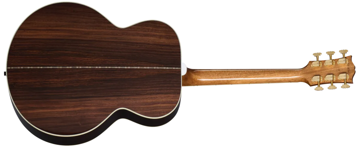 The Gibson SJ-200 is the world's most famous acoustic guitar and well deserves its designation as the "King of the Flat-Tops." Often made with a maple back and sides, the earliest examples were instead made with rosewood bodies. Now Gibson is proud to release the SJ-200 Standard Rosewood, bringing rosewood back to this highly acclaimed and cherished model. In addition to the rosewood back and sides, it features a Sitka spruce top, mahogany neck with a comfortable round profile and a rosewood fretboard with graduated crown mother-of-pearl inlays, a two-bar moustache bridge, TUSQ0 bridge pins, saddle, and nut, and gold Grover® Imperial ™ tuners. It also comes equipped with the L.R. Baggs™ Anthem active under-saddle pickup and microphone system for superb studio-quality sound when plugged in, whether you're recording or playing live. Also available in left-handed versions, a Gibson hardshell case is included.