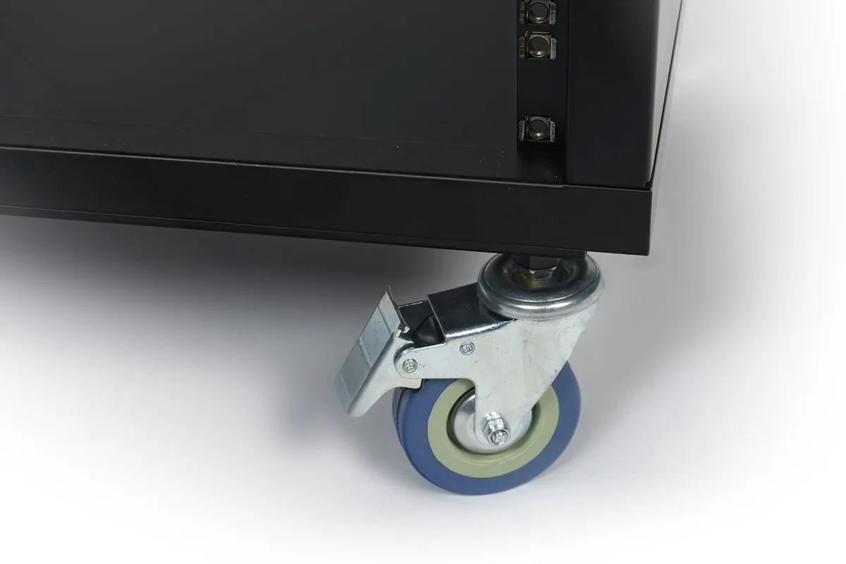 This studio rack offers generous space for all your devices, thanks to its universal mounting rails, compatible with the vast majority of 19” equipment. Perforations all over the rack ensure optimum ventilation, while unobstructed access to the front and rear provide easy access to your equipment's wiring and connections. To move all your equipment with ease, the IR-12 is equipped with 4 wheels, 2 of which have locking brakes.