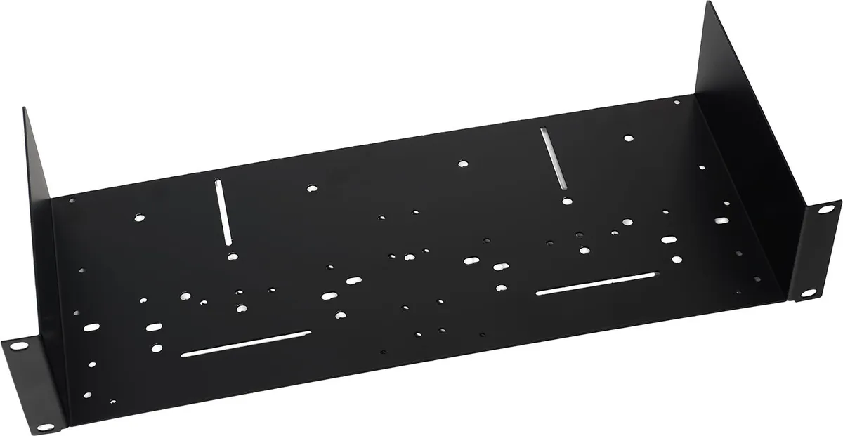 The TA-2U 2U rack tray provides a convenient surface for installing non-rackmount devices in your 19" rack cabinet, right next to your other rackmount audio devices. Made of steel and featuring a flat surface with numerous holes, this tray is ideal for accommodating a wide range of equipment, such as laptops, routers, non-rackmount microphone receivers or half-rack interfaces. Its 2U format allows the installation of equipment requiring more height, such as HF receivers equipped with antennas or certain audio interfaces.