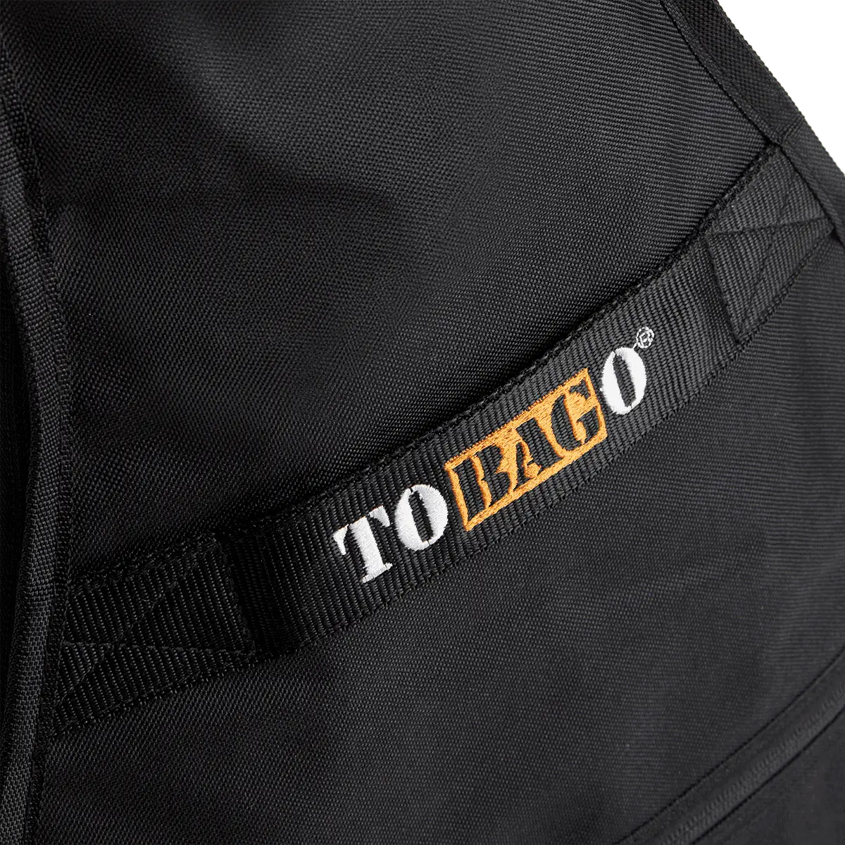 Equipped with a side handle and a front handle, both featuring the Tobago logo, the bag provides a secure grip. Adjustable straps offer various transport options, adapting to the needs of acoustic guitarists.