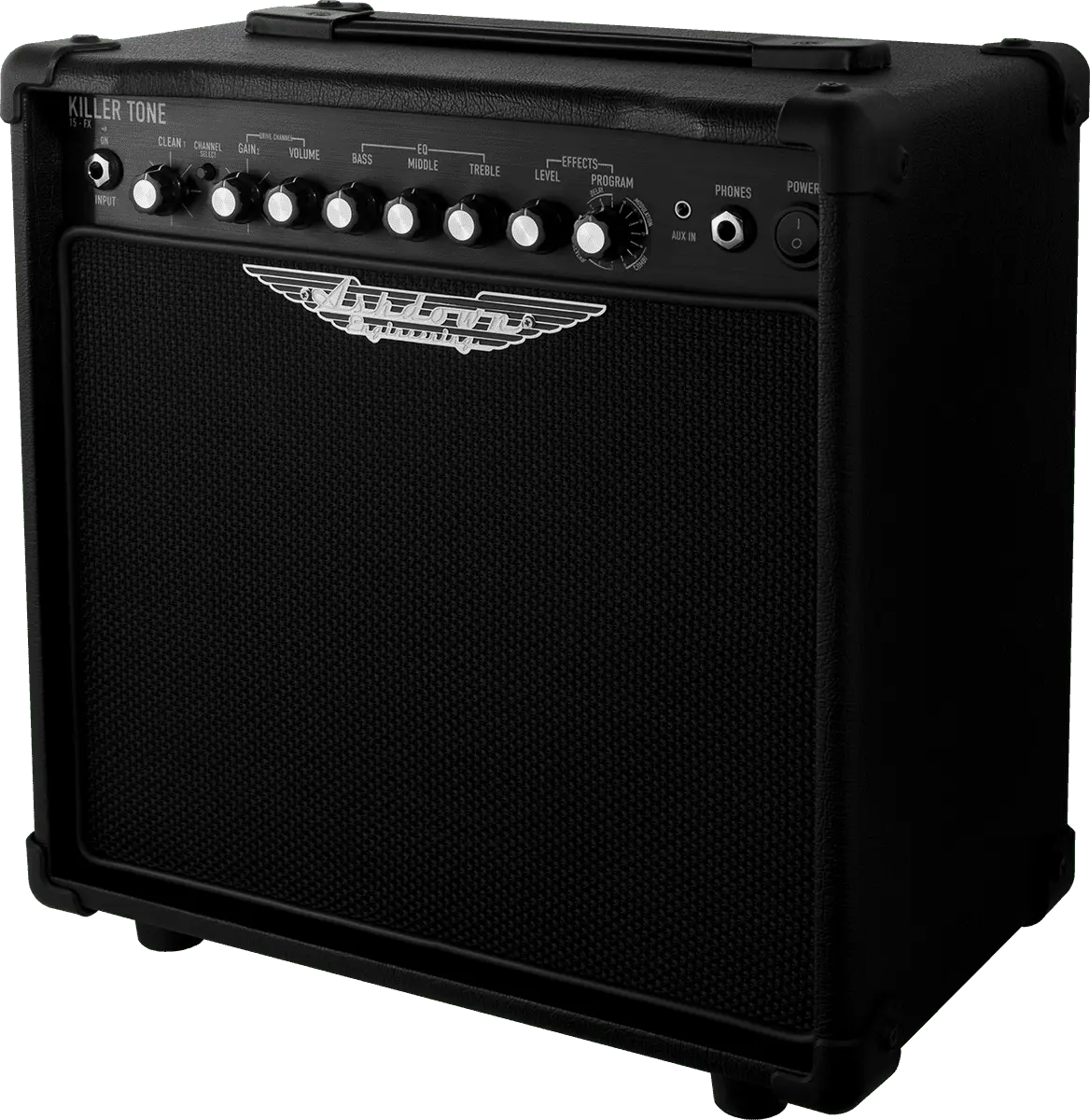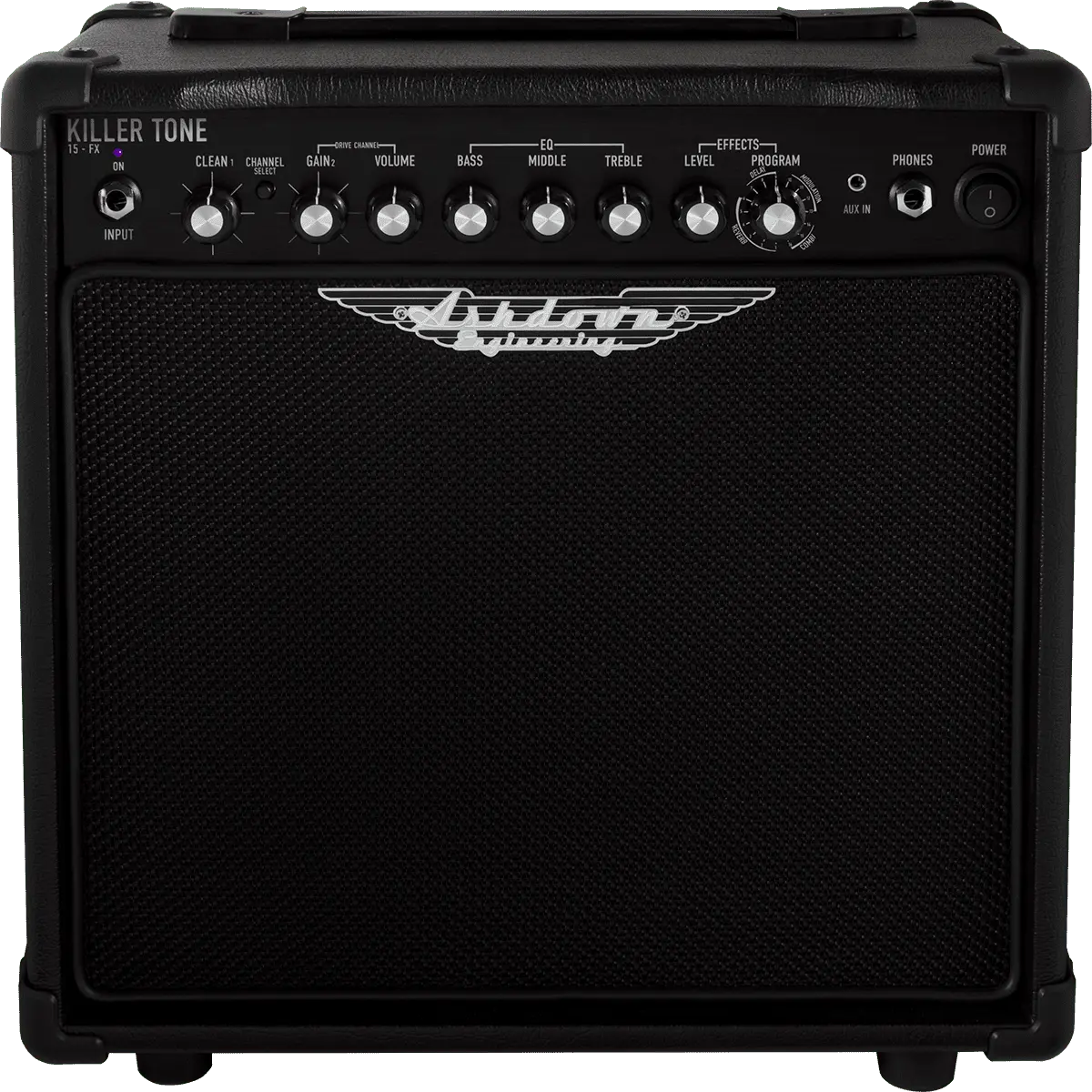 Meet the KT-15 FX, the latest addition to the AIl NEW Killer Tone practice amp series. This 15-watt powerhouse is meticulously designed to deliver Killer Tone day in and day out. Tuned to replicate the warmth of a tube amp, it's packed with modern features tailored for aspiring guitarists. With a 16-way digital effects unit, line input for jamming, and headphone out for silent practice, the KT-15 FX is your all-in-one solution for killer sound.