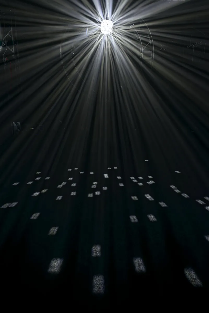- 6 motorized discs covered with a mosaic of mirrors