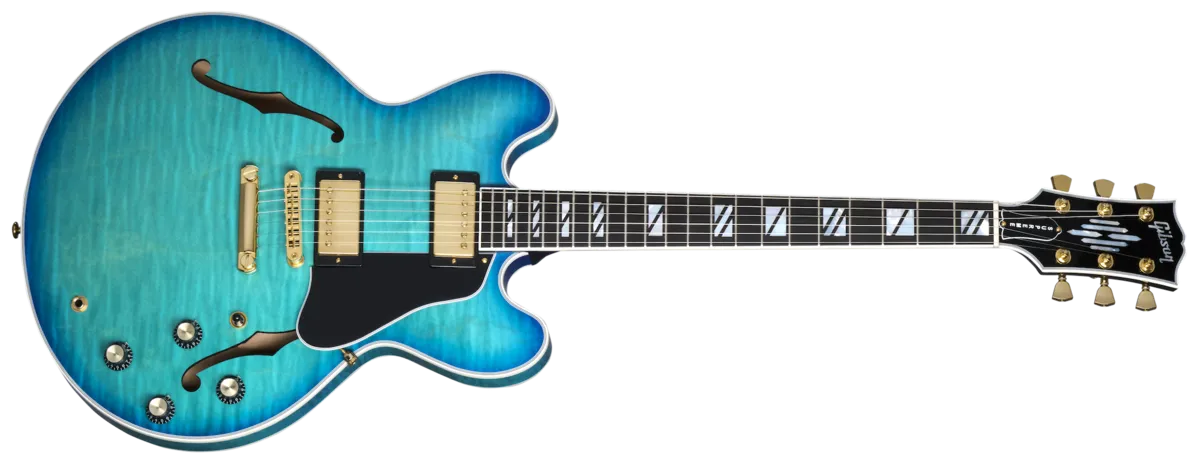 The Gibson ES-335 has always been known as an exceptionally versatile guitar. Regardless of your stylistic preferences or what the gig calls for, it can cover it with aplomb. The ES Supreme expands on that legendary versatility and adds features that take the ES ™ to new heights of beauty, including a 3-ply body with a AAA figured maple top, Super Split Block mother-of-pearl neck inlays, gold hardware, and a striking new mother-of-pearl headstock inlay inspired by a design from the 1940s that was discovered in the Gibson archives. Smooth playability is ensured by the mahogany neck with its Rounded C profile and compound radius ebony fretboard, while the famous ES sonic versatility is enhanced even further with the addition of push/pull volume pots for coil splitting the Burstbucker™ Rhythm Pro and Burstbucker Lead Pro pickups. It all comes together to make this the ES that reigns supreme. A hardshell case is also included.