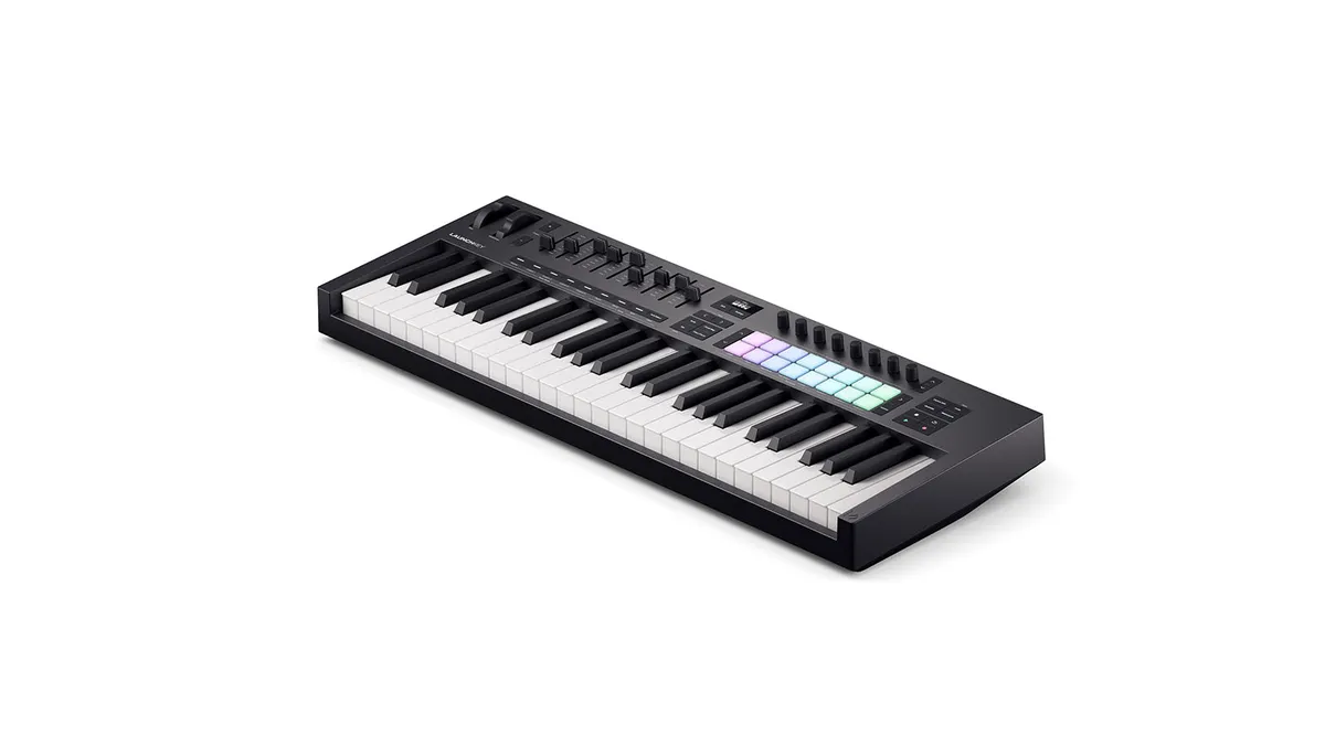 Launchkey 49 is a powerful DAW controller featuring a premium semi-weighted keybed, eight continuous encoders, nine faders, and 16 velocity-sensitive pads for playing drums, instruments, and launching clips. Designed for artists, the 49-key offers powerful DAW integration with a thoughtfully arranged control surface. Play instruments and drums, launch clips and scenes, and gain instant hands-on control over your DAW’s mixer, devices, and effects.