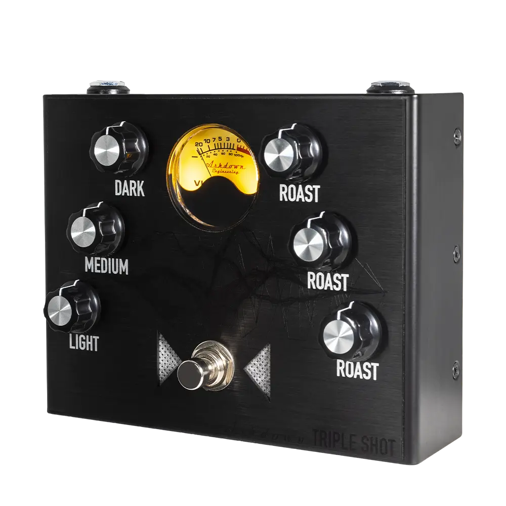 In September 2023, Ashdown proudly presents the NEW Ashdown Triple Shot blended drive pedal. Tired of compromising your bass guitar distortion? The Triple Shot offers uncompromising high-gain bass overdrive, granting you complete mastery over your overdriven tones. Imagine having three distinct distortion pedals in one sleek unit. With separate controls for "Dark," "Medium," and "Light" frequencies, you can sculpt your sound precisely, from thick and chunky lows to high-gain trebles. Whether you need a subtle mid-range boost or a roaring overdriven bass sound, the Triple Shot delivers. Its sensitivity means even subtle tweaks can create a world of difference. The Ashdown Triple Shot is the ultimate tool for crafting your unique drive sound.