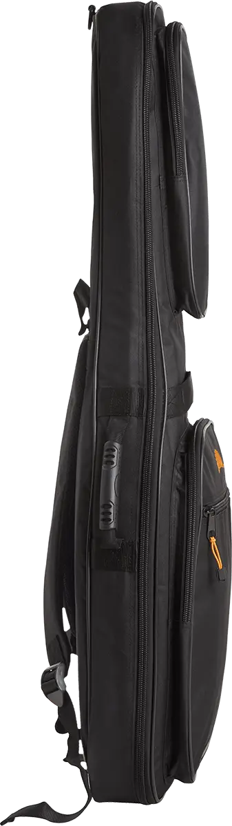 The 10mm zipper with an orange elastic pull guarantees a reliable and easy closure. The front pocket, enriched by the embroidered "Armadillo" logo, features a compartment corresponding to the instrument's body with two dividers with zips, providing a convenient and protected space. Additionally, an upper front pocket corresponding to the neck allows you to neatly store accessories.