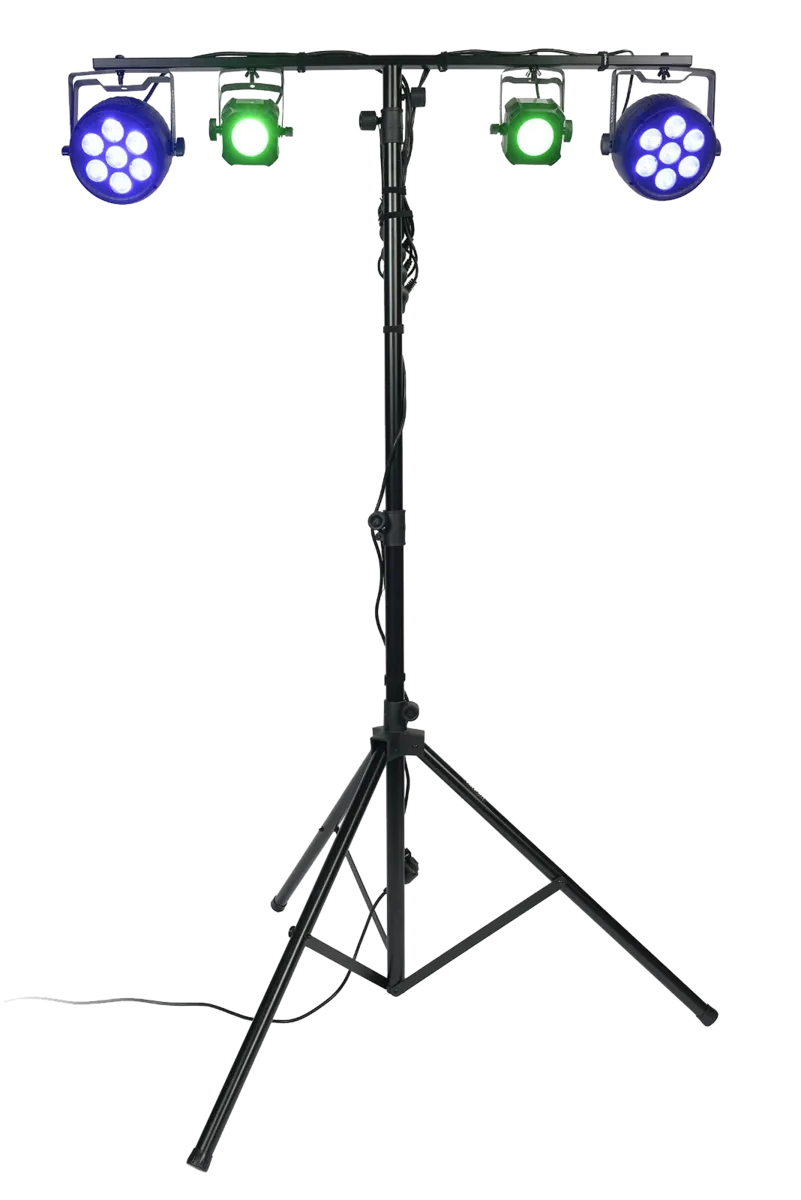 A simple, effective stand for your lightsThe LS-100 is the ideal light stand for DJs and contractors looking for an efficient and versatile way to hang their light fixtures at all their events. Thanks to its crossbar with four anchoring points fitted with nuts, the LS-100 allows a variety of spotlights and effects to be securely mounted. Its telescopic mast, height-adjustable over a range from 130 to 275 cm, and secured by a locking pin, offers great installation flexibility. Combined with a stable tripod, this system guarantees perfect stability and optimum weight distribution.Fast, versatile installation capability.The LS-100 is the ideal partner for DJs and contractors. Its versatility means it can be adapted to many different configurations, from small stages to weddings or DJ sets. Its quick, intuitive set-up saves you precious time, while its robustness and reliability ensure you can use it intensively with confidence. The secure locking system guarantees confident installation, even with all 4 anchor points fully occupied.