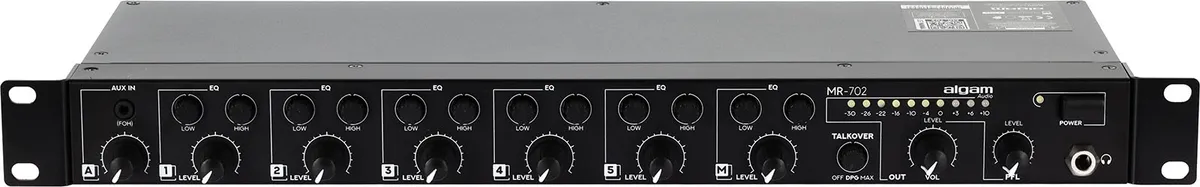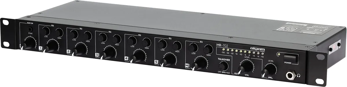 The MR-702 is a 7-channel rackmount audio mixer designed to meet the specific needs of audio professionals. Its robust construction and versatility make it a central component in numerous installations, from conference sound systems to events. Thanks to its intuitive interface and comprehensive features, it offers great flexibility of use and extensive connectivity to integrate seamlessly into an existing audio setup.
