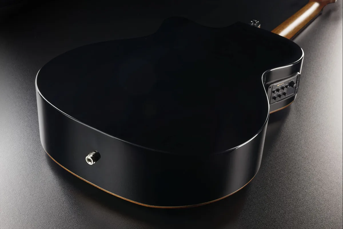 Located on the upper side of the guitar where the strumming arm rests, the bevel smooths the transition between the top and the sides, providing a more comfortable resting position for the forearm.