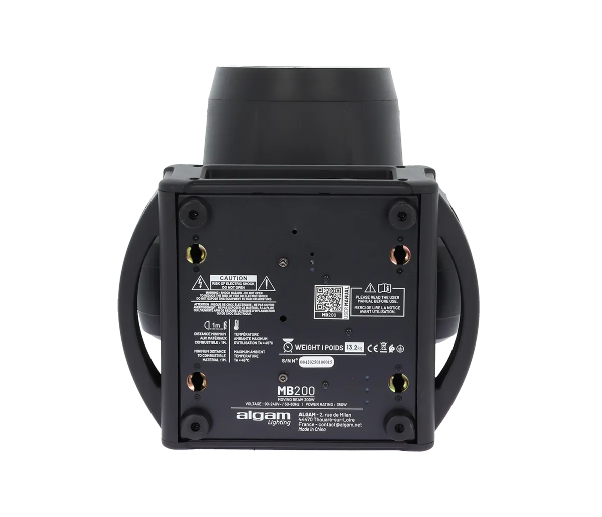 The MB200 is easy to use and control, thanks to its various operating modes: DMX (16 or 22 channels), master/slave, music detection and automatic. It can be controlled via a DMX console for precise control of all its parameters, or via the integrated control panel for simplified operation. The lighting system is also compatible with the RDM protocol, enabling remote management of parameters and easier maintenance.