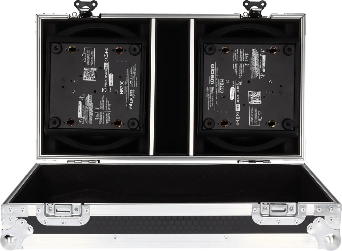 The MB200-FC flight case is the ideal transport solution for your MB200 moving heads. With its castors and carrying handles, this flight case will follow you wherever you go, ensuring effective protection for your machines from one performance to the next.The ideal transport solution for your MB200.This wooden flight case has been specially designed to provide optimum protection for two MB200 Beam moving heads during transport and storage. It is equipped with castors to facilitate transport of your equipment, even on uneven surfaces.Made from sturdy materials, it provides effective protection against bumps, scratches and other damage that may occur during transport. Its interior is padded to hold projectors in place and absorb vibrations, while the top panel is locked by a series of butterfly fasteners.