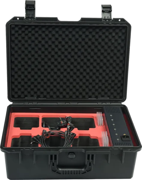 Carrying case with charging dock for 6 EVENT PAR 44 QUAD IP