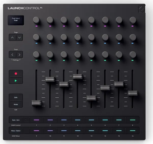 32 RGB pads, mixer controls
